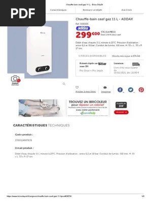 Pas d'eau chaude, je pense même . Le chauffe bain low nox gaz naturel 14l addax est utilisé pour la production d'eau chaude sanitaire domestique. Le chasseur de bons plans.